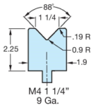 5-3/4" square with 1-1/2", 2",. 3" and 5" vee openings